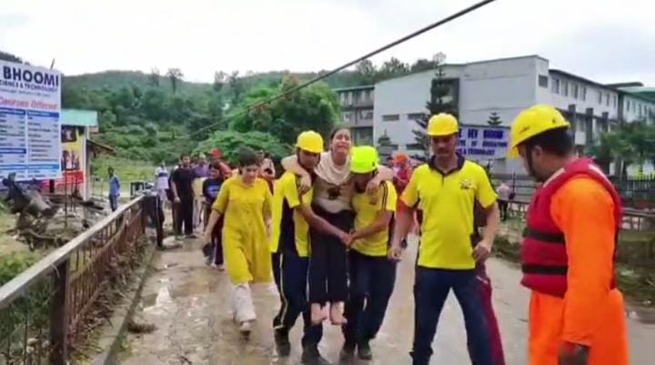 देहरादून। देहरादून समेत विभिन्न पर्वतीय क्षेत्रों में सोमवार रात से हो रही अत्यधिक बारिश से पूरे उत्तराखंड में जन अस्त व्यस्त हो रखा है। देहरादून जिले के पौंधा स्थित देवभूमि इंस्टिट्यूट परिसर में अत्यधिक बारिश से जलभराव की स्थिति उत्पन्न हुई, जिसमें लगभग 200 छात्र-छात्राएं फंसे होने की सूचना SDRF को प्राप्त हुई। उक्त सूचना पर SDRF वाहिनी मुख्यालय, देहरादून से एक रेस्क्यू टीम तत्काल घटनास्थल हेतु रवाना की गई। टीम द्वारा मौके पर पहुँचकर त्वरित रेस्क्यू अभियान संचालित किया गया। जलभराव के बीच टीम ने अत्यंत सूझबूझ एवं तत्परता से कार्य करते हुए सभी 200 छात्र-छात्राओं को सुरक्षित बाहर निकालकर सुरक्षित स्थान पर पहुंचाया। SDRF उत्तराखंड द्वारा यह रेस्क्यू अभियान सफलतापूर्वक पूर्ण किया गया।