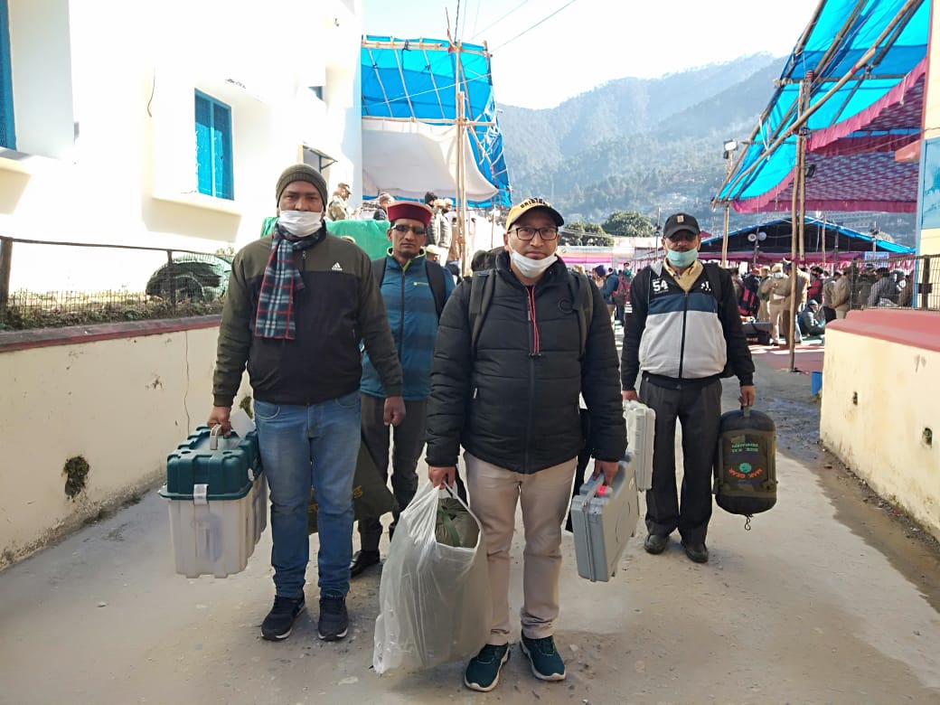 उत्तरकाशी – विधानसभा सामान्य निर्वाचन-2022 के अन्तर्गत जनपद में 14 फरवरी को प्रस्तावित मतदान कार्यक्रम सम्पन्न कराने के लिए रविवार को 450 पोलिंग पार्टियां रवाना हुई। पोलिंग पार्टियां रवानगी स्थल उत्तरकाशी स्थित राजकीय आदर्श कीर्ति इण्टर कॉलेज प्रांगण से जिलाधिकारी व जिला निर्वाचन अधिकारी मयूर दीक्षित की उपस्थिति में अपने से सम्बन्धि मतदेय स्थलों को रवाना हुई। 450 पोलिंग पार्टियों में से पुरोला विधान सभा क्षेत्र के लिए 114 पोलिंग पार्टियां, यमुनोत्री विधानसभा क्षेत्र के लिए 160 पोलिंग पार्टियां एवं गंगोत्री विधानसभा क्षेत्र के लिए 176 पोलिंग पार्टियां रवाना हुई।