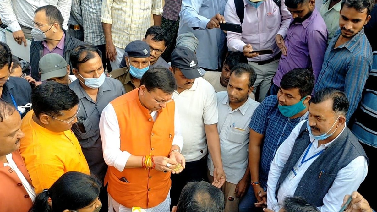 खटीमा मंडी पहुंचे सीएम धामी।